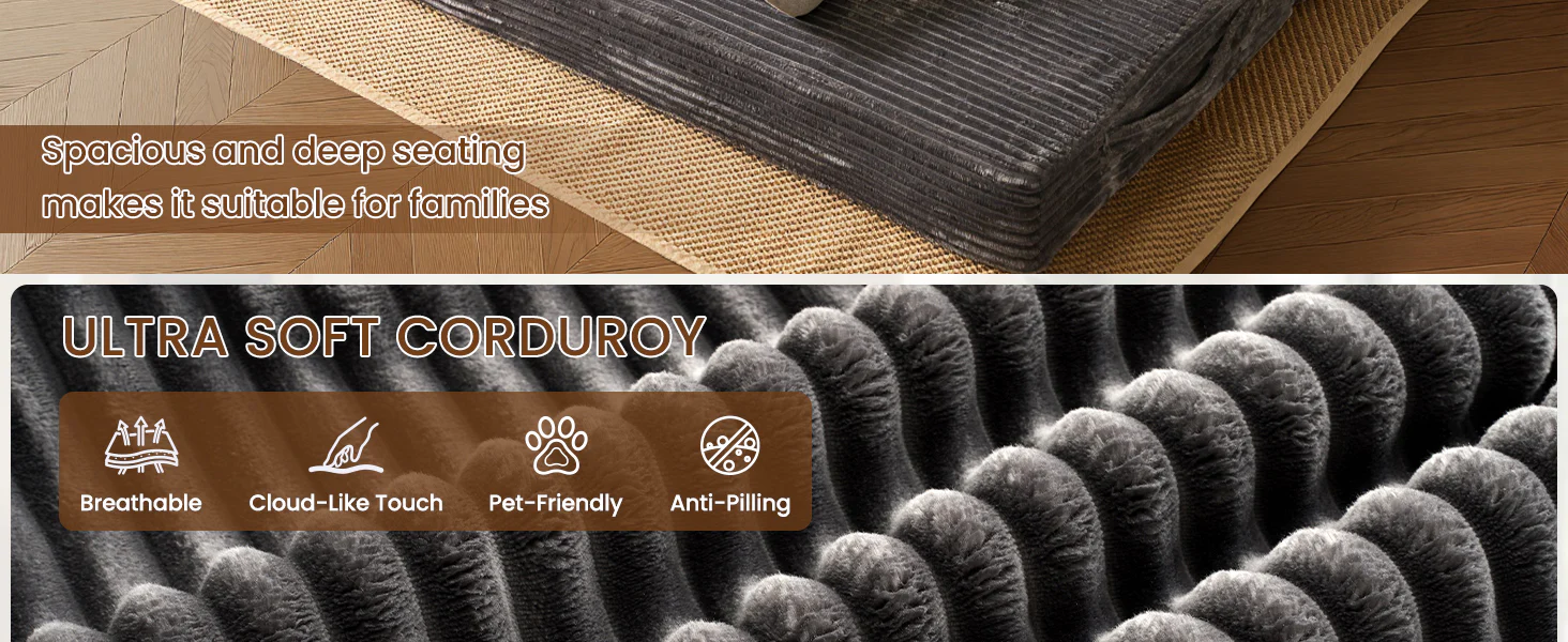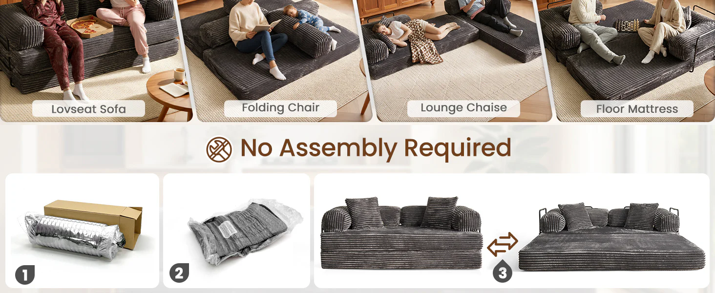With our modular cloud chaise, assembly is a breeze—just unbox, fluff each piece, and let it spring back to shape. Full recovery takes about 72 hours. Enjoy the ease of zero setup!