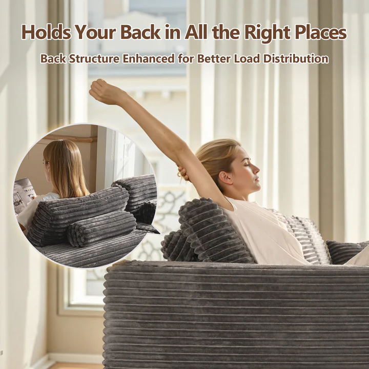 Wrapped in soft-touch plush corduroy, this sofa adds a warm, inviting texture to your living space. The fabric is not only comfortable but also stain-resistant and durable—an ideal choice for families, pet owners, or anyone who actually lives on their furniture every day.